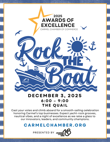 The Carmel Chamber of Commerce cordially invites you to set sail for the 2025 Awards of Excellence — Rock the Boat.
