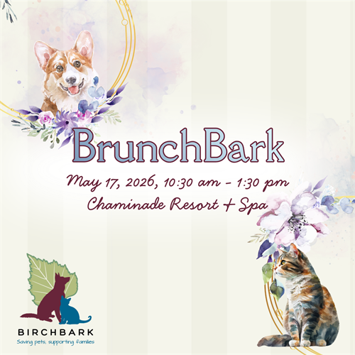 Join us at our inaugural BrunchBark — an elegant brunch at Chaminade in support of BirchBark's programs. The event will include a champagne welcome, buffet brunch, silent auction, and brief program sharing how BirchBark helps reduce financial barriers to veterinary care and supports pets and their families through difficult times.