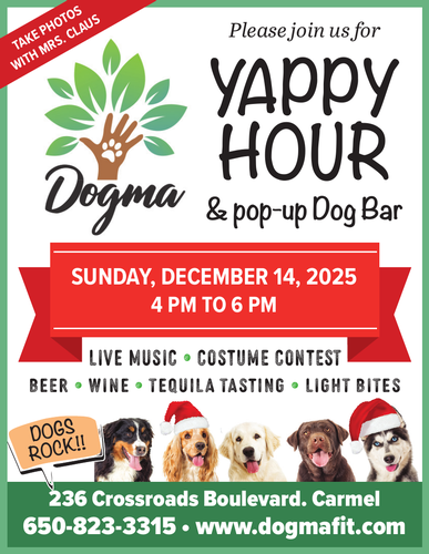 Join us for Yappy Hour! Take photos with Mrs. Claus! Live Music, Costume Contest, Beer, Wine, Tequila Tasting, Light Bites